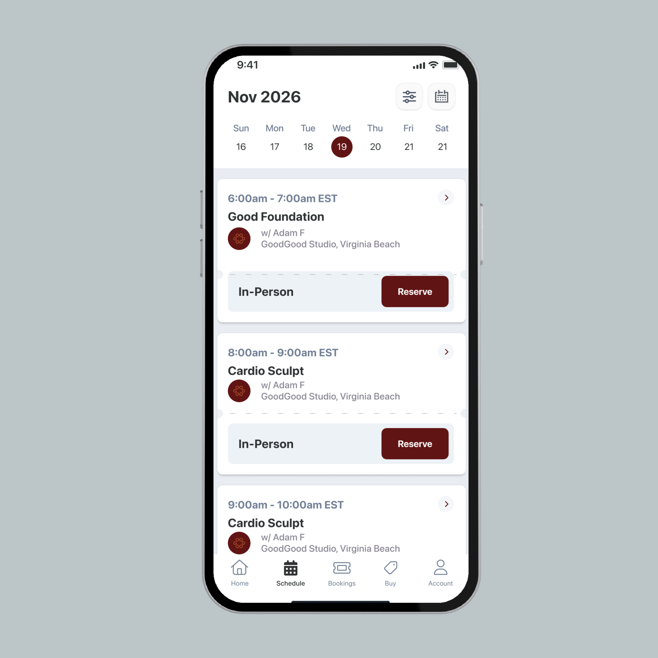 Download the GoodGood Studio app for easy booking, class reminder notifications, & more.